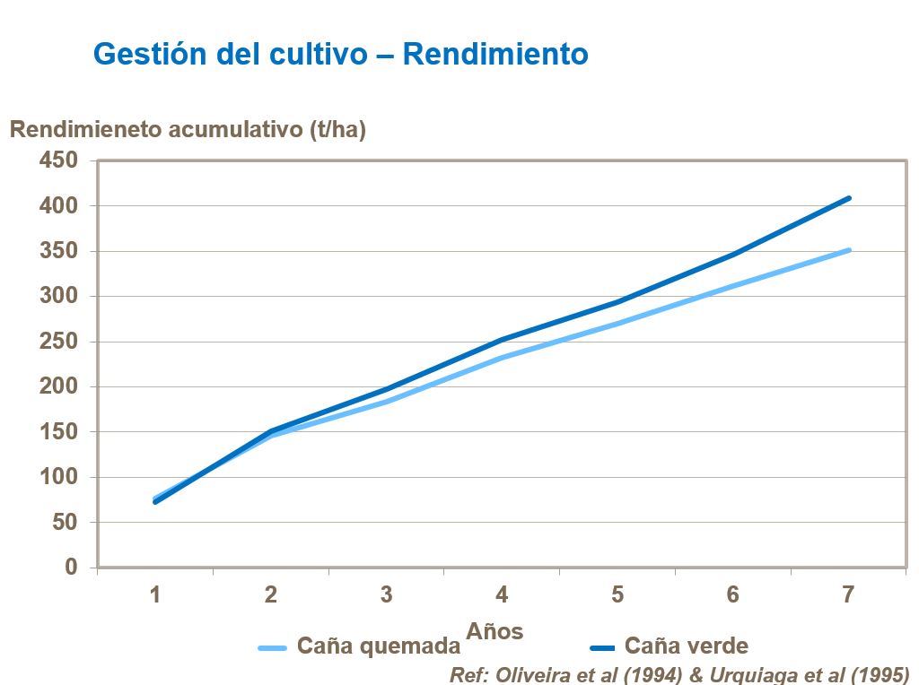 Cambiar a un sistema de cosecha en verde puede mejorar los rendimientos del cultivo (Figura 6), lo que se debe en gran medida al mejoramiento del contenido de materia orgánica, de los niveles de nutrientes y de la estructura del suelo, junto con menor erosión, conservación de la humedad y supresión de malezas.