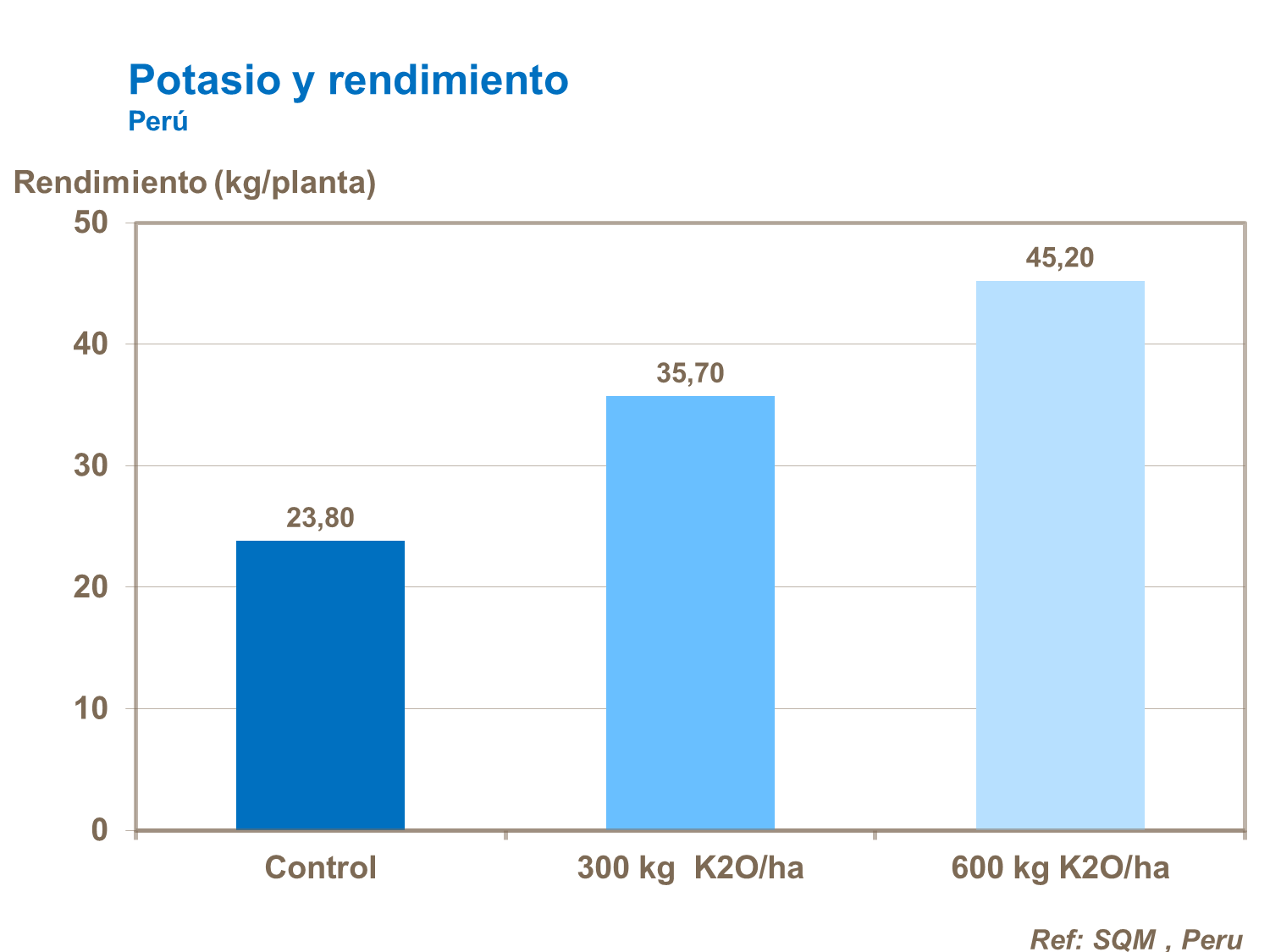 Es necesario en cantidades grandes y durante toda la temporada, sobre todo durante el llenado del fruto para la asimilación de los azúcares. En ensayos chilenos, en tasas muy altas de potasio (600 kg/ha de K2O) casi duplicó la producción en comparación con vid sin tratamiento.