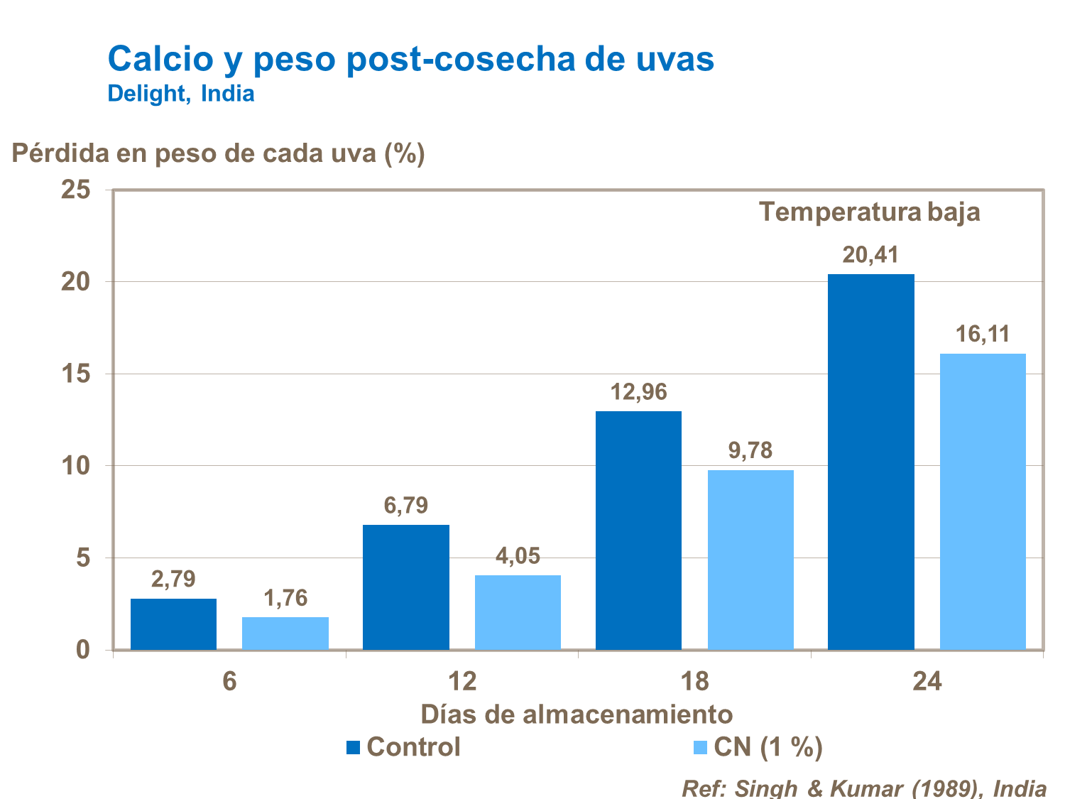 Con la aplicación de calcio se reducirá la pérdida de peso post cosecha y el arrugamiento.